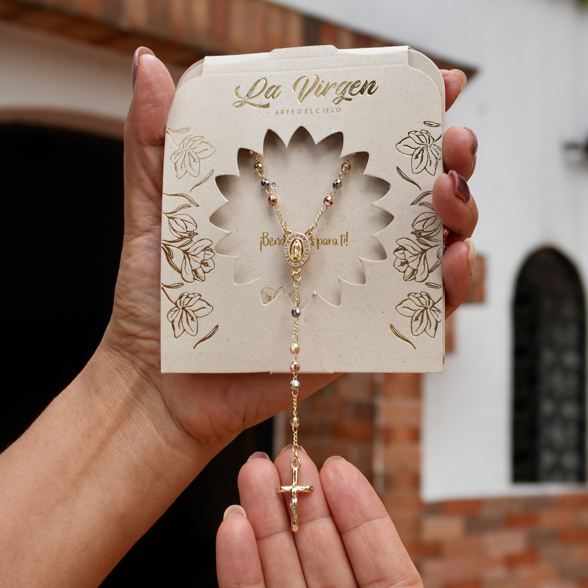 Un rosario que toca el alma. Tres oros, una sola fe.